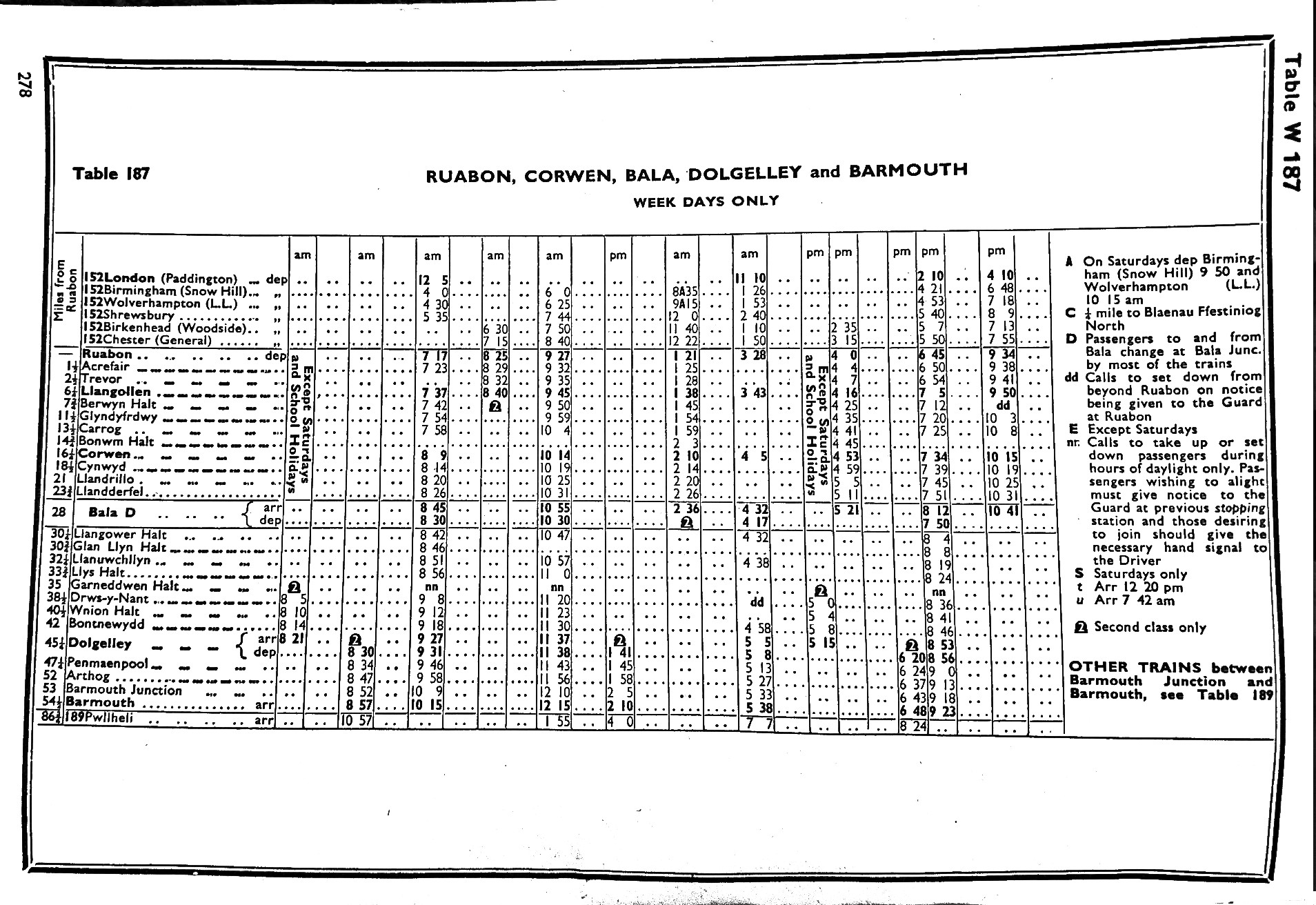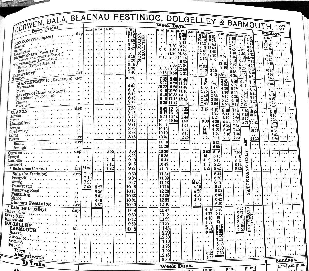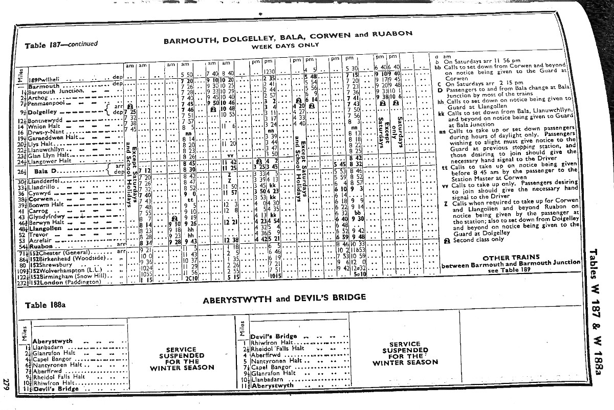 Some bits of it are most confusing. It took me quite some time to twig that the times for "Bala" are NOT the times for Bala Junction, but the times at what I think of as Bala Town on the Blaenau branch.