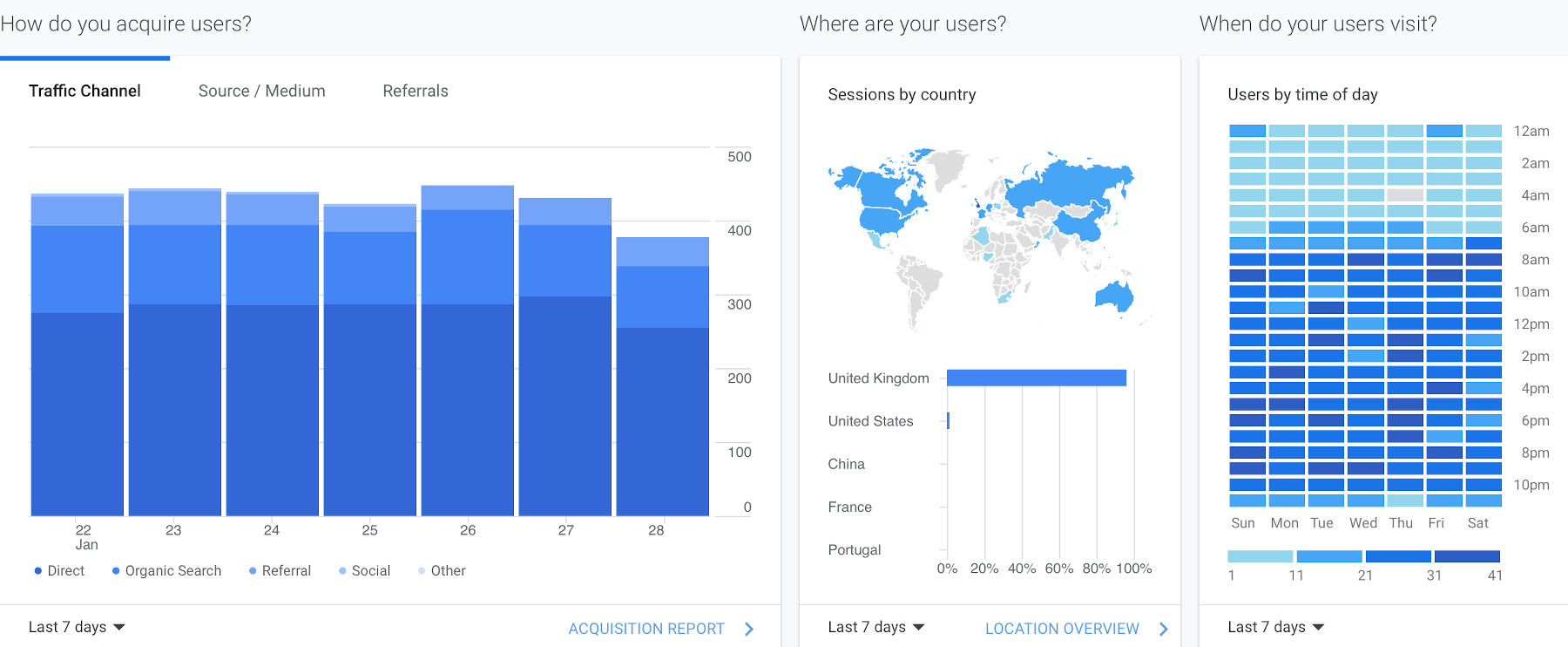 847 users in the last 7 days 3k sessions between them. Bounce rate 30.17%