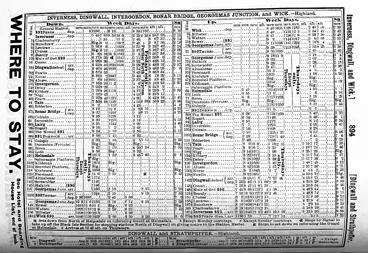 For the Far North section, here is the timetable from April 1910 - which I think is quite soon after the weekly "Further North Express" was added to the timetable. Shows the improvement in journey time possible by leaving out the small stations along the way